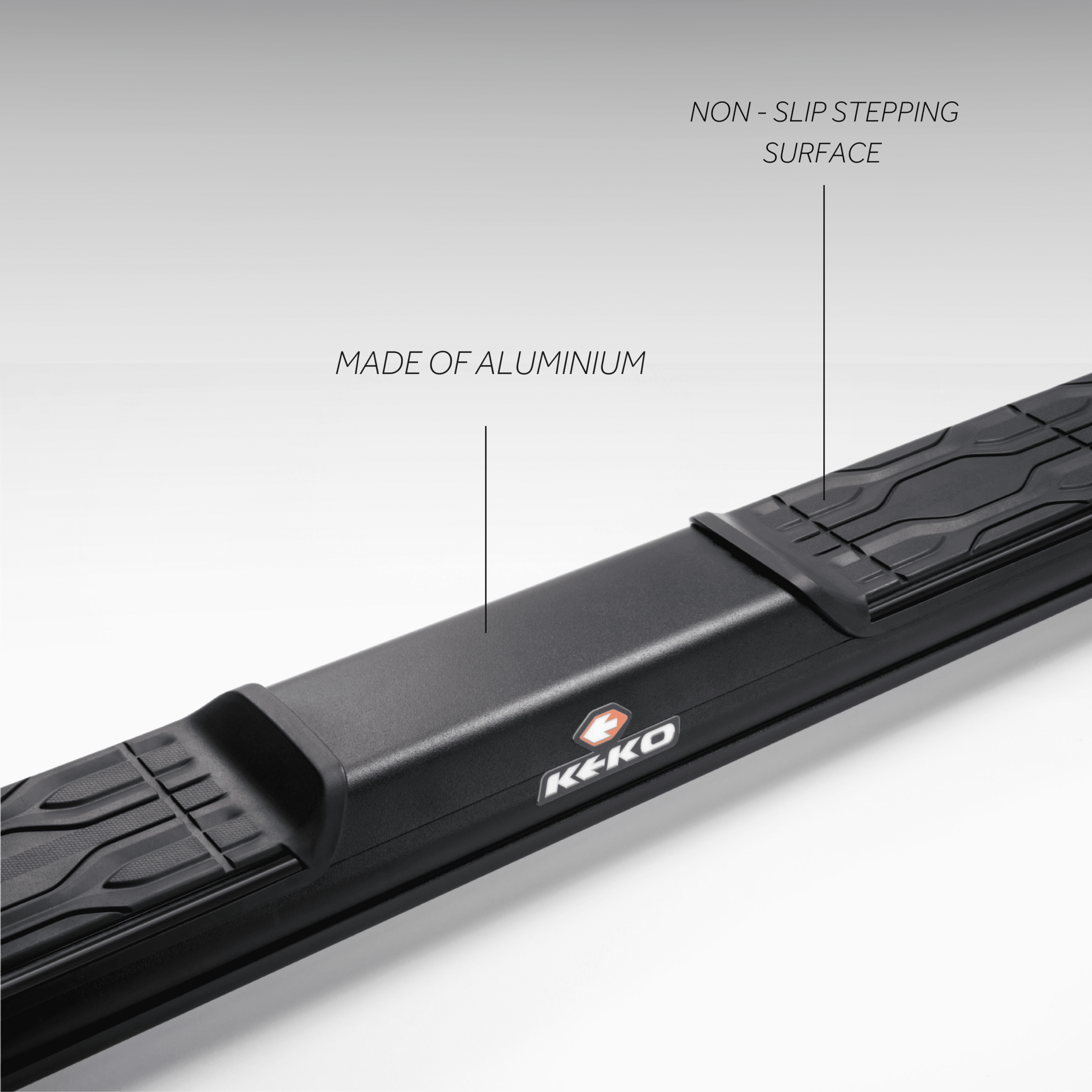 A fusion of a well-balanced design and a high level of craftsmanship, the KEKO Running Board is the style your truck needs. As a first-of-its-kind design, it features a high-quality finish and a strong body. These Aluminum Running Board manufactured from an extruded profile comes in a textured black finish over an OEM style e-coat primer, ensures reliability and lasting value.