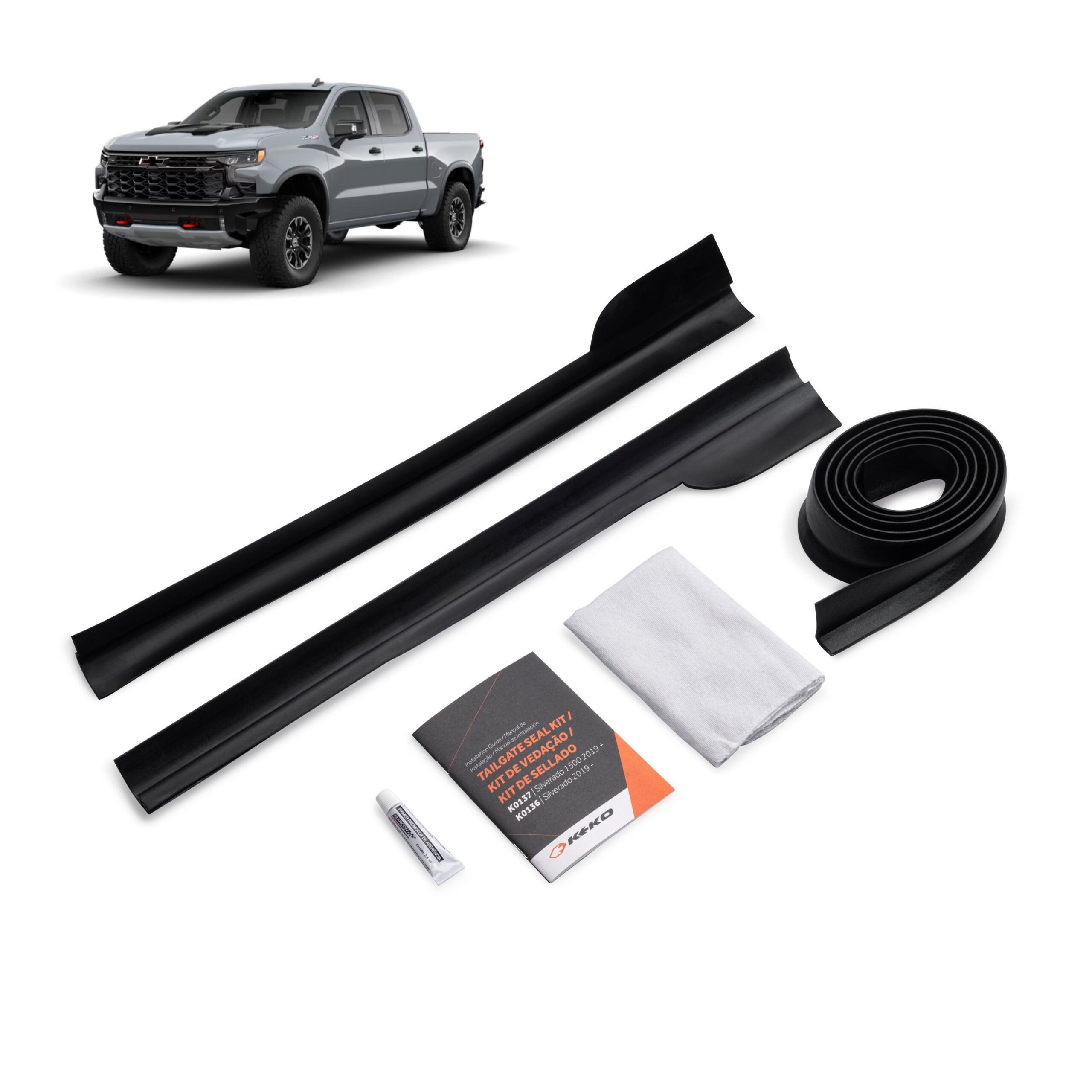 Developed exclusively for each pick-up truck model, no adaptations required. Does not interfere with the opening and closing of the tailgate. Made of high-performance rubber and bonding tapes. Compatible with Chevrolet Silverado (year 2019 and above).